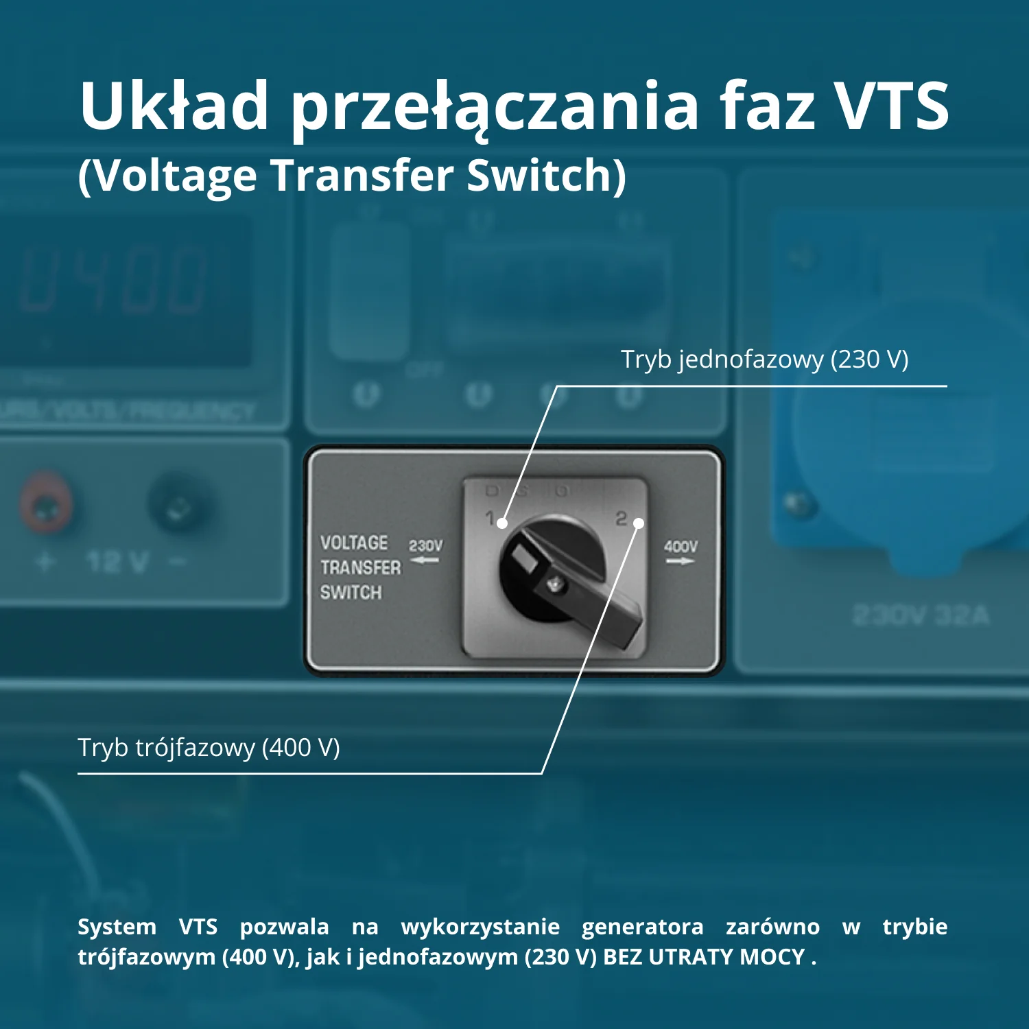 | Gniazda | 1 x CEE 230 V 32 A, 1 x CEE 400 V 16 A |
