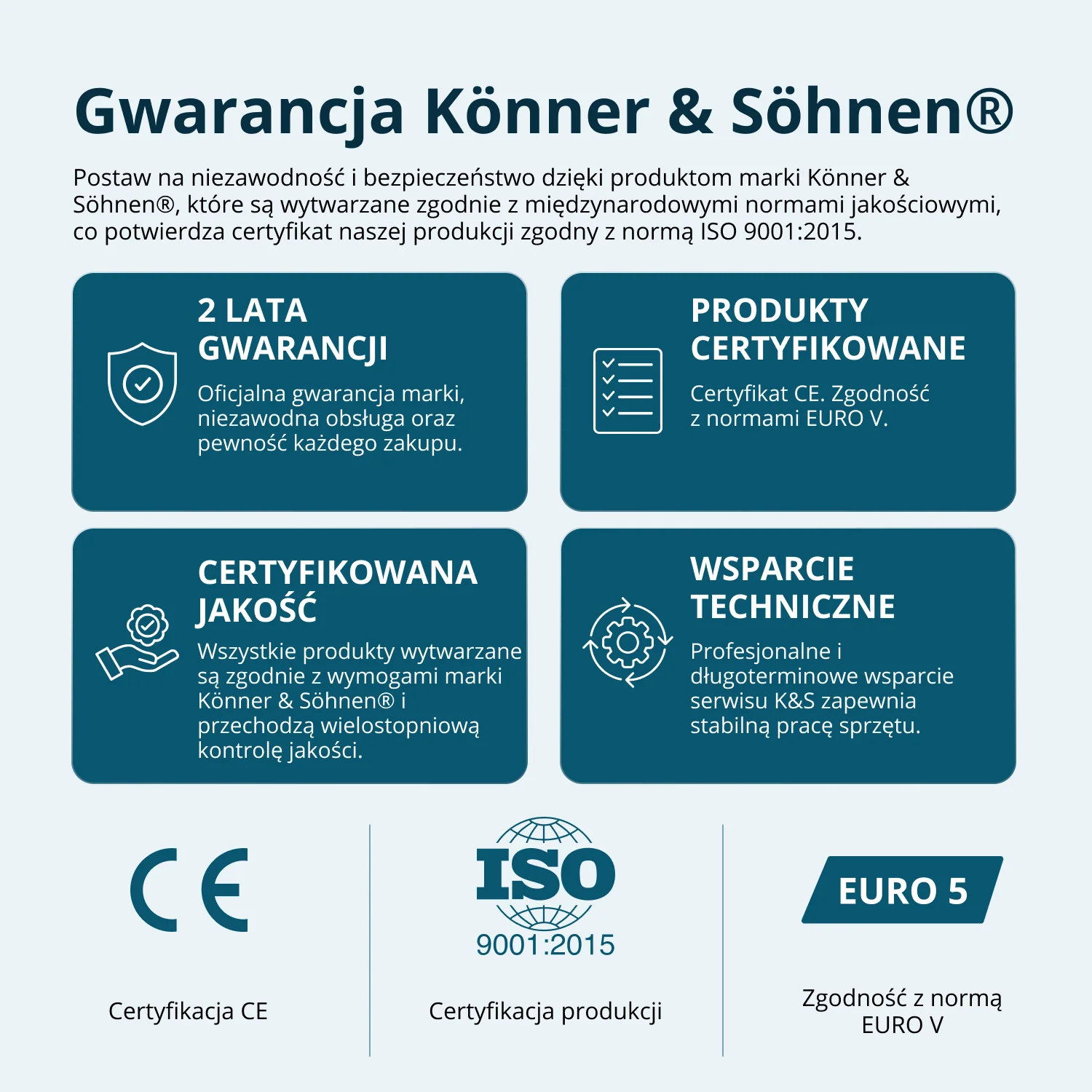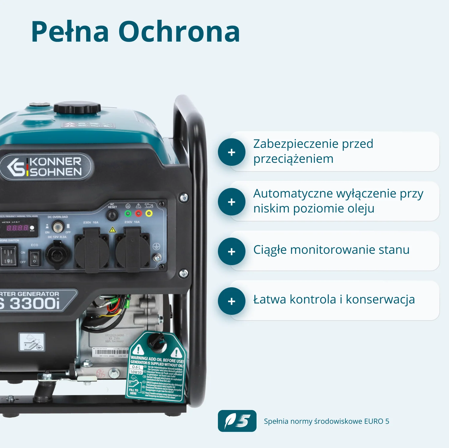 | Wyświetlacz LED | Woltaż, częstotliwość, licznik motogodzin |