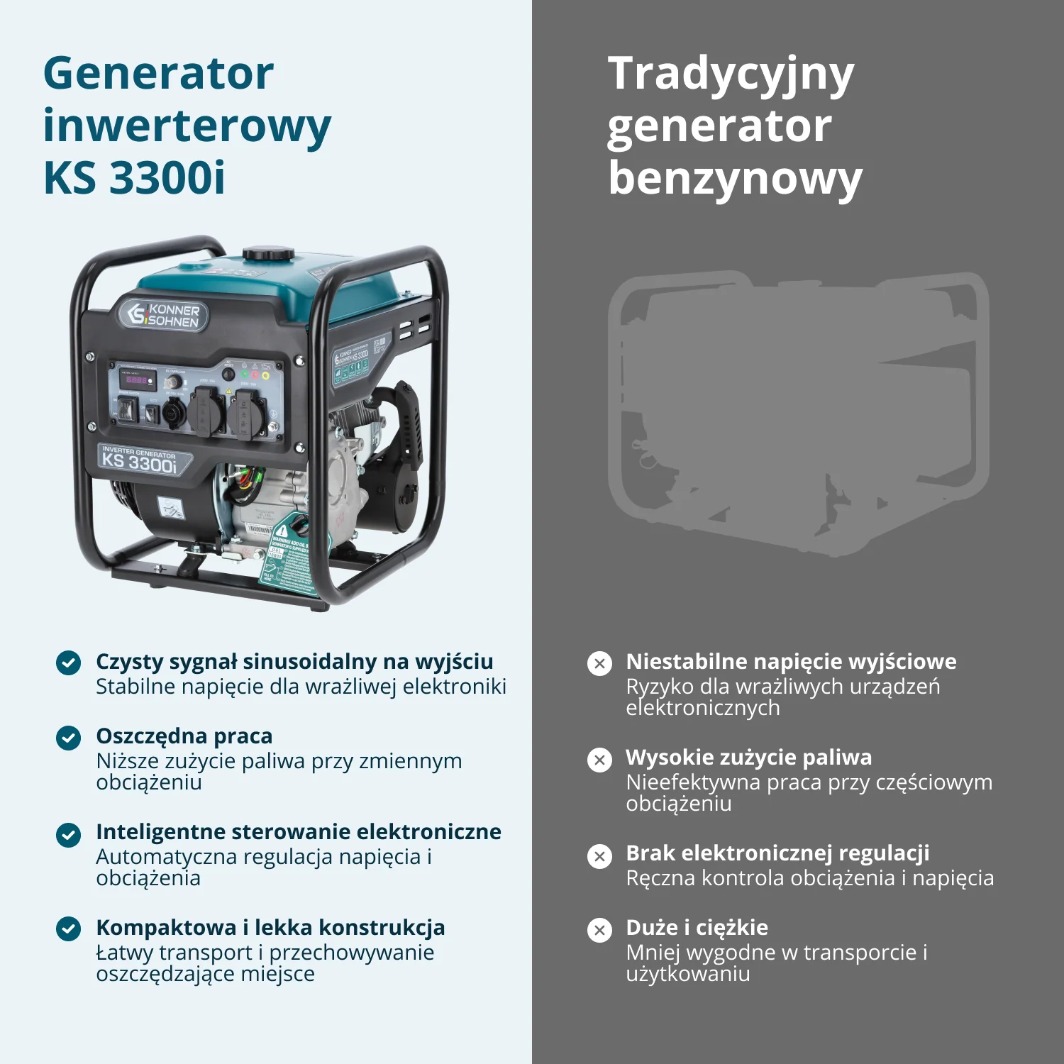 | Kompletność* | Generator, Opakowanie, Instrukcja, Klucz do świec, Śrubokręt PH2 6,0 mm, Pokrowiec na akcesoria |