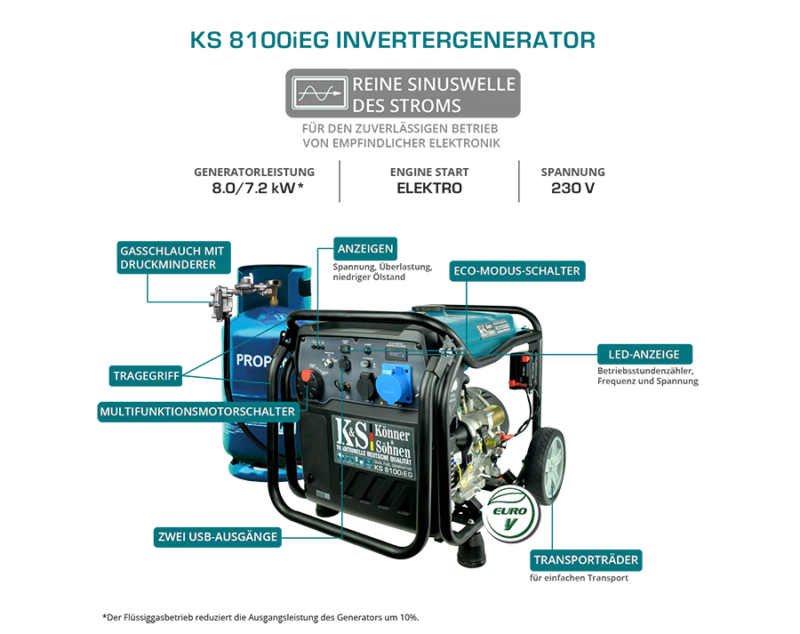 Inwerterowy generator LPG/benzyna KS 8100iEG| Napięcie, V | 230 |