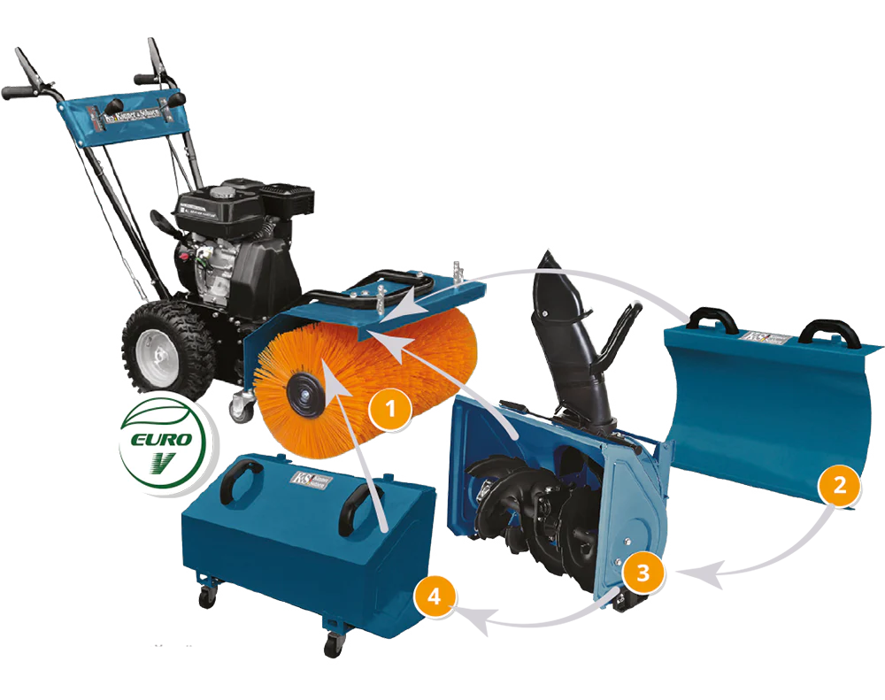 Efektywna wielofunkcyjna maszyna «Könner & Söhnen» do wykonywania szerokiego zakresu prac rolniczych przez cały rok. Główną cechą tej maszyny jest samobieżny i aktywny osprzęt, dzięki któremu maszyna nie wymaga dodatkowego wysiłku ze strony użytkownika, co pozwala na realizację szerokiego zakresu zadań. Maszyna świetnie poradzi sobie z takimi pracami jak: usuwanie śniegu, kurzu, brudu, opadłych liści lub innych śmieci, plantowanie działki i innych czynności. Osprzęt obejmuje 4 różne akcesoria, które pozwalają wykorzystywać urządzenie przez cały rok: